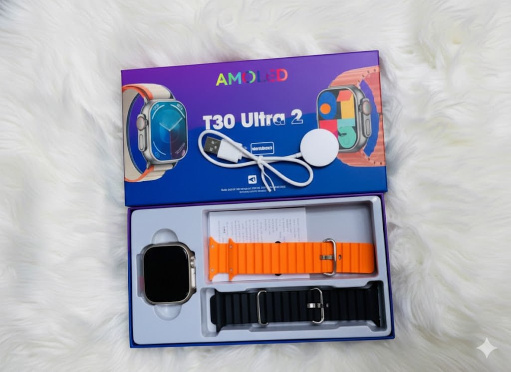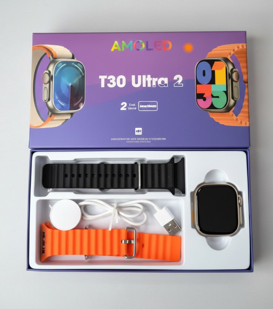 ساعت هوشمند T30 Ultra 3 AMOLED با 2 جفت بند سیلیکونی