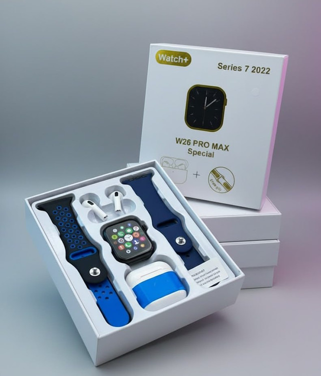 ساعت هوشمند W26 Pro max همراه با ایرپاد و 2 جفت بند
