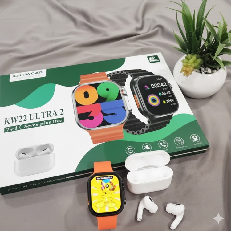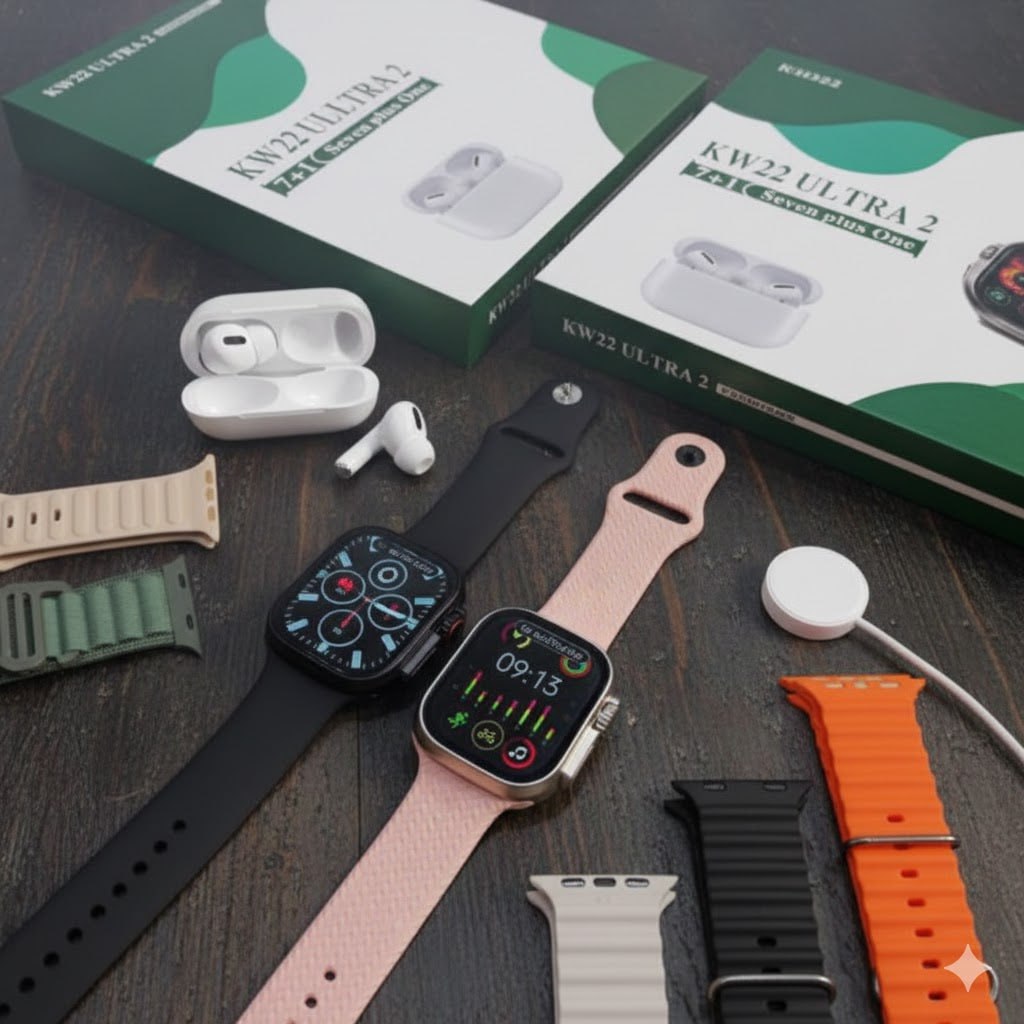 ساعت هوشمند KW22 ULTRA 2 به همراه ایرپاد پرو و 7 بند